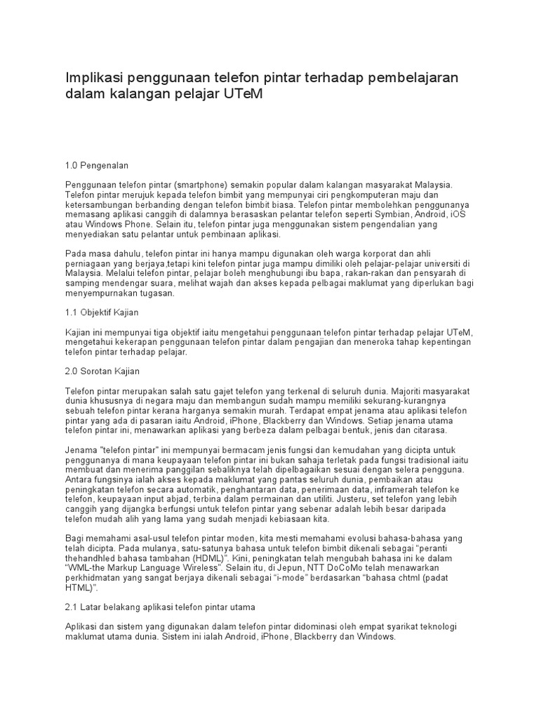 Implikasi Penggunaan Telefon Pintar Terhadap Pembelajaran Dalam Kalangan Pelajar Utem Pdf